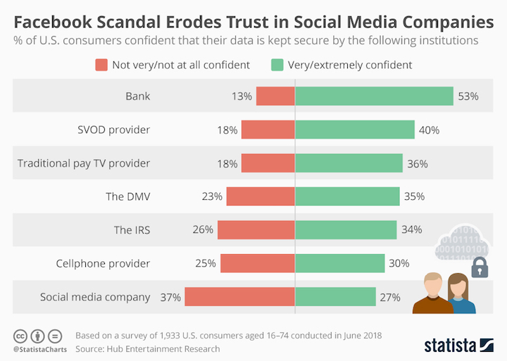 Well, here we are at another crossroad for social media platforms. Masters of the universe in Silicon Valley are being taken to task for their lack of control and protection of user information and accountability for the content posted to their platforms. Both of these topics are specifically related to trust. Over the past few months, there has been a decline in user participation due to deliberate manipulation of content designed to divide or inflame, user privacy issues, fake news, and a general denial that the above-mentioned are growing problems for these platforms.